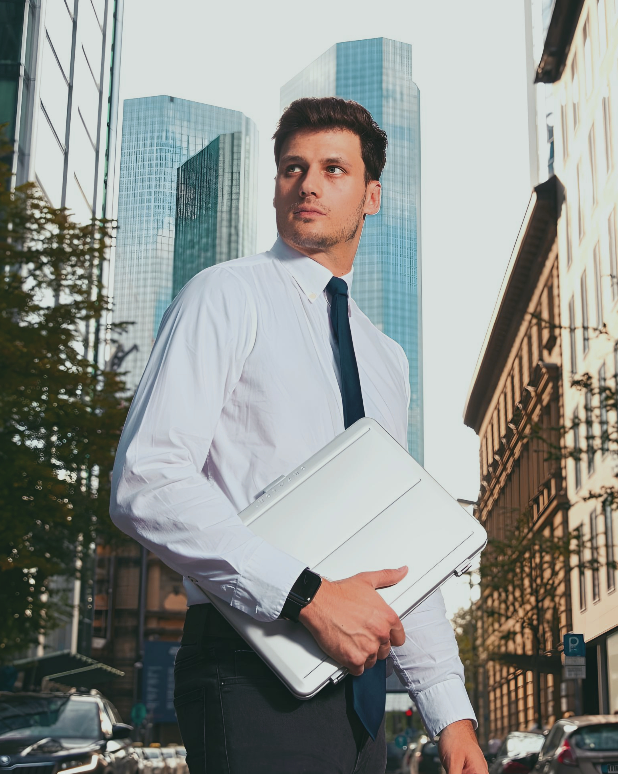 Da es unser Ziel war, Ihnen eine passgenaue Laptophülle aus Aluminium im schlanken Design anzubieten, können Sie höchstens noch ein paar Blatt Papier dazulegen. Das Hardcase ist minimalistisch designend, um platzsparend und leicht getragen zu werden. Verstauen Sie Ihre Laptoptasche im Handumdrehen in ihrem Rucksack oder einer Tasche.